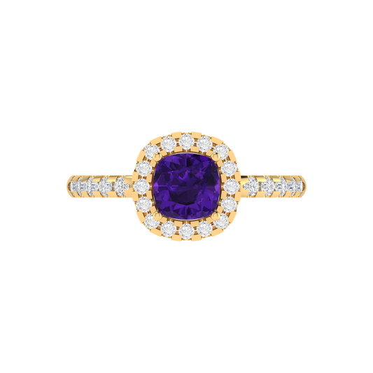 Gold Plated BIS Hallmarked Pure 925 Sterling Silver Solitaire Amethyst Gemstone Ring | Rhodium and Rose Gold Plating Options