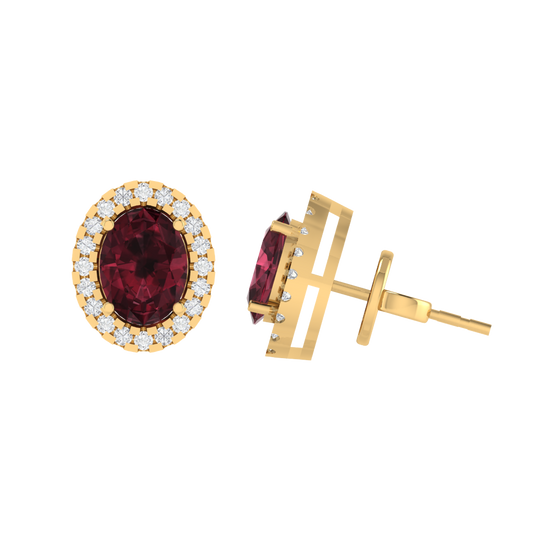 Gold Plated Sterling Silver Oval Cut Garnet Gemstone Stud Earring