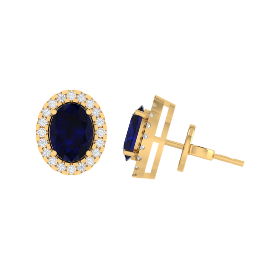 Gold Plated Sterling Silver Oval Cut Sapphire Gemstone Stud Earring
