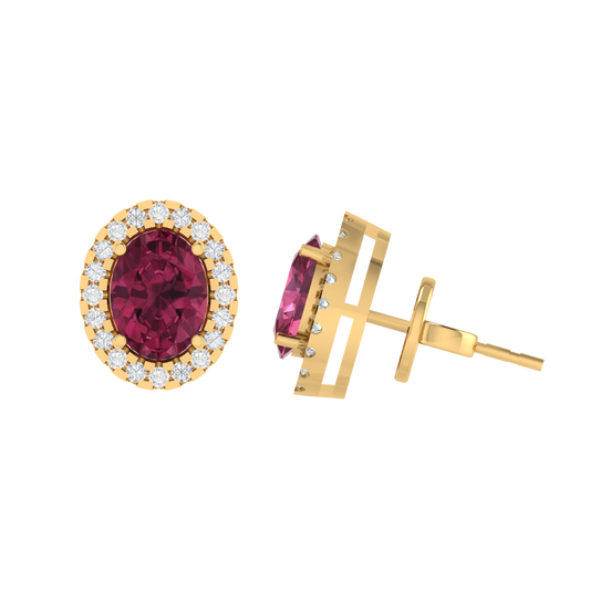 Gold Plated Sterling Silver Oval Cut Tourmaline Gemstone Stud Earring