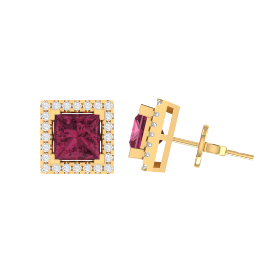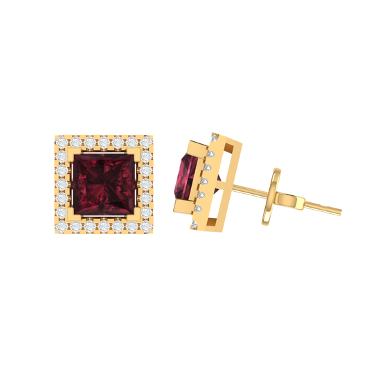 Gold Plated Sterling Silver Princess Cut Garnet Gemstone Stud Earring