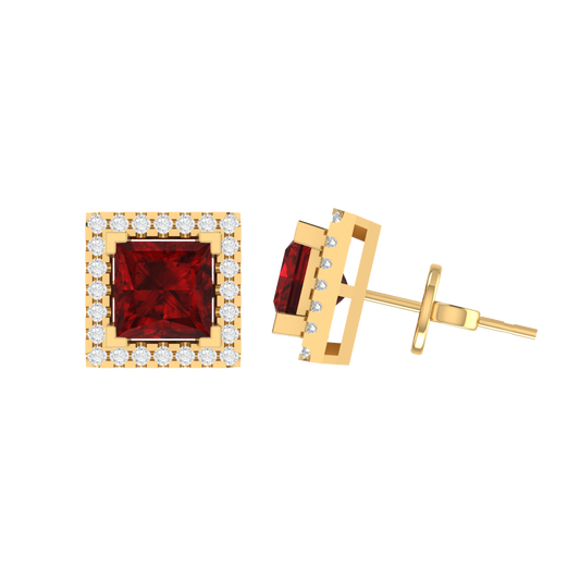 Gold Plated Sterling Silver Princess Cut Ruby Gemstone Stud Earring