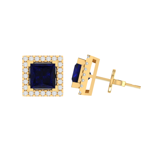 Gold Plated Sterling Silver Princess Cut Sapphire Gemstone Stud Earring