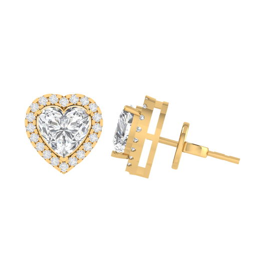 Gold Plated Sterling Silver Heart Cut Cubic Zirconia Gemstone Stud Earring