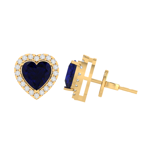 Gold Plated Sterling Silver Heart Cut Sapphire Gemstone Stud Earring