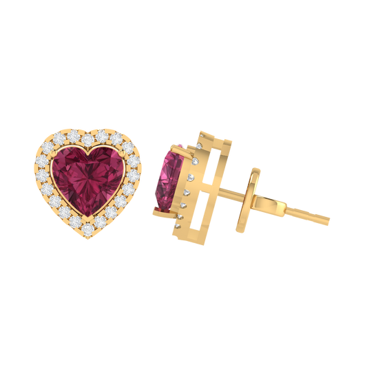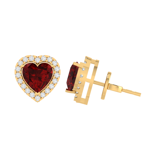 Gold Plated Sterling Silver Heart Cut Ruby Gemstone Stud Earring
