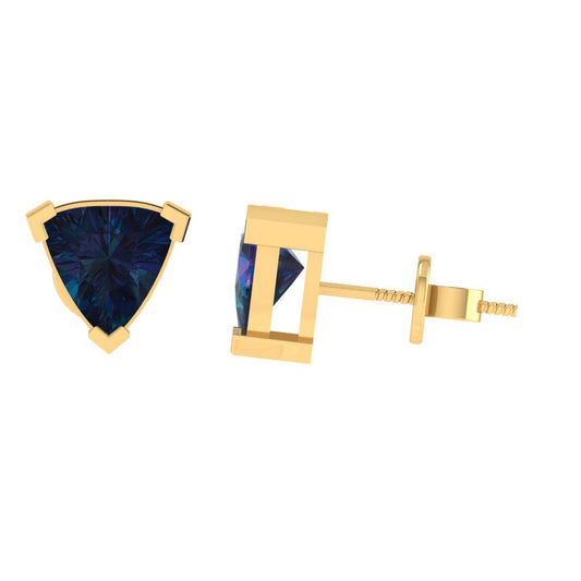 Gold Plated Sterling Silver Trillion Cut Alexandrite Gemstone(June Birthstone) Stud Earring