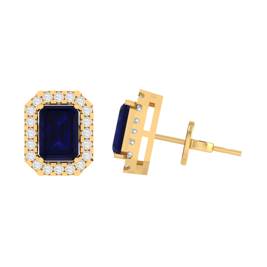 Gold Plated Sterling Silver Emerald Cut Sapphire Gemstone Stud Earring