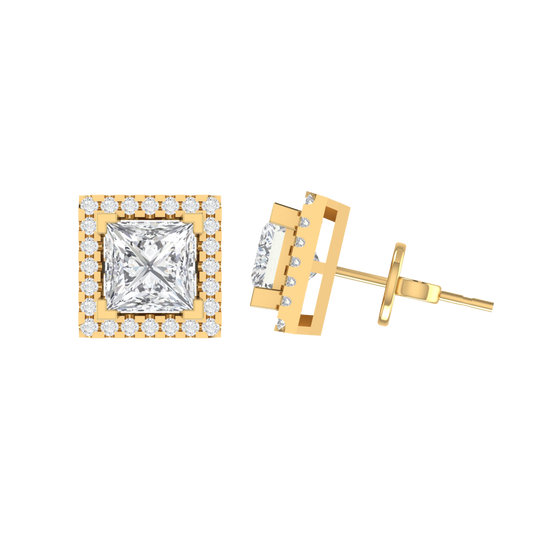 Gold Plated Sterling Silver Princess Cut Cubic Zirconia Gemstone Stud Earring