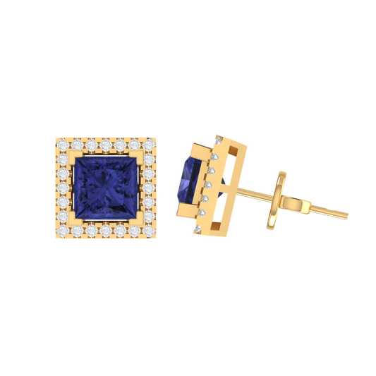 Gold Plated Sterling Silver Princess Cut Tanzanite Gemstone Stud Earring