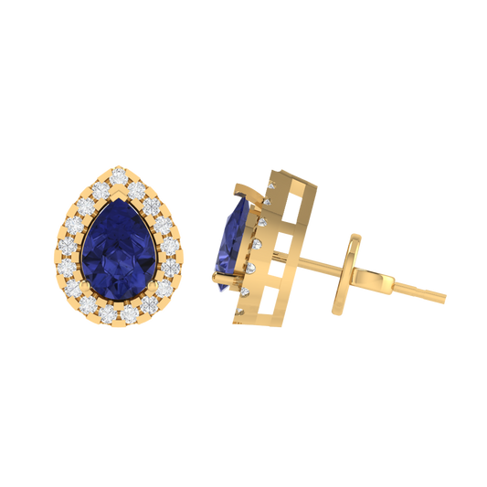 Gold Plated Sterling Silver Pear Cut Tanzanite Gemstone Stud Earring