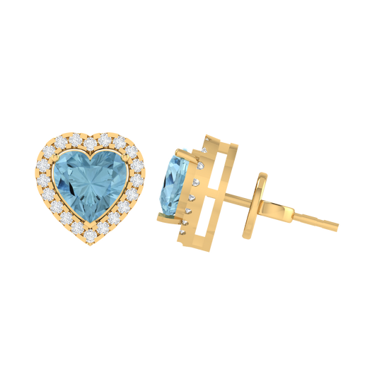 Gold Plated Sterling Silver Heart Cut Aquamarine Gemstone Stud Earring