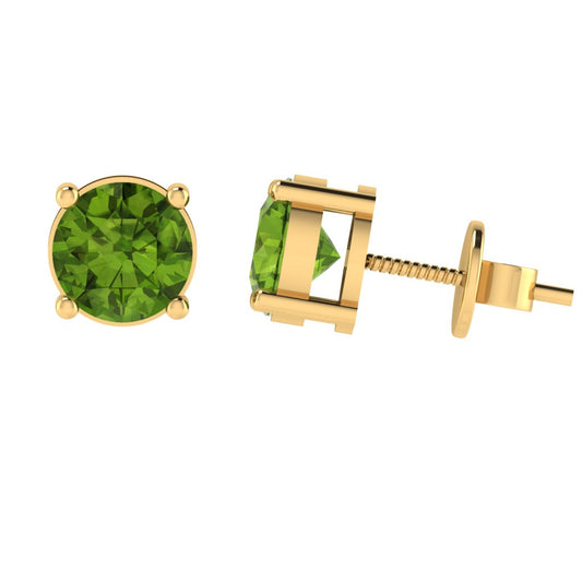 Gold Plated Sterling Silver Round Cut Peridot Gemstone(August Birthstone) Stud Earring