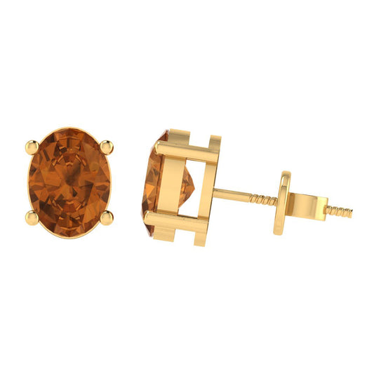 Gold Plated Sterling Silver Oval Cut Citrine Gemstone(November Birthstone) Stud Earring