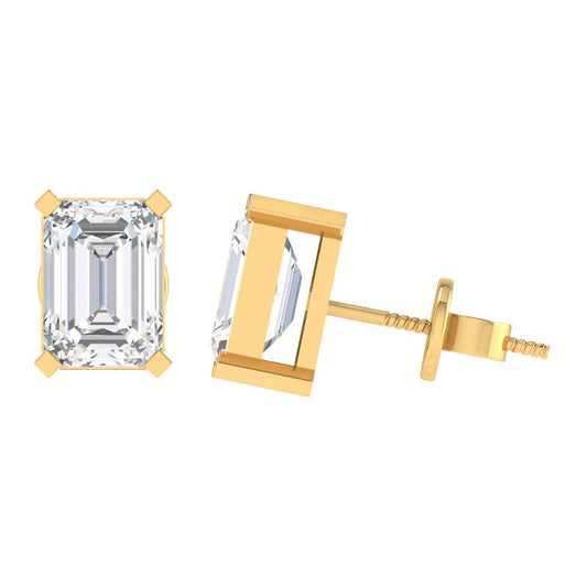 Gold Plated Sterling Silver Emerald Shape Cubic Zirconia Diamond(April Birthstone) Stud Earring