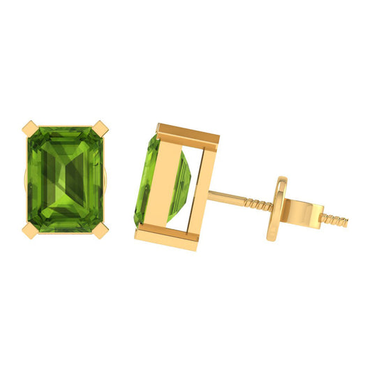 Gold Plated Sterling Silver Emerald Shape Peridot Gemstone(August Birthstone) Stud Earring