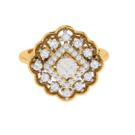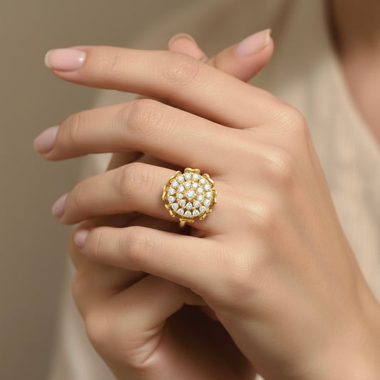 Gold Plated BIS Hallmarked Pure 925 Sterling Silver Cubic Zirconia Floral Ring | Rhodium and Rose Gold Plating Options
