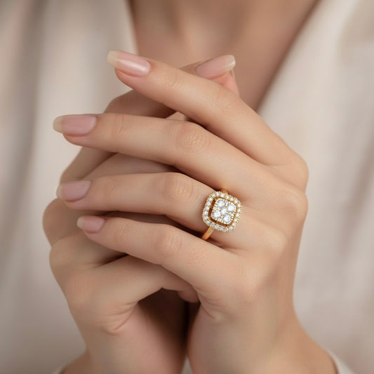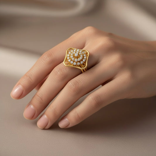 Gold Plated BIS Hallmarked Pure 925 Sterling Silver Cubic Zirconia Cluster Ring | Rhodium and Rose Gold Plating Options