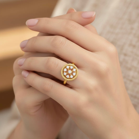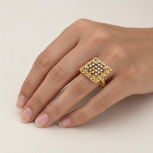 Gold Plated BIS Hallmarked Pure 925 Sterling Silver Cubic Zirconia Floral Ring | Rhodium and Rose Gold Plating Options