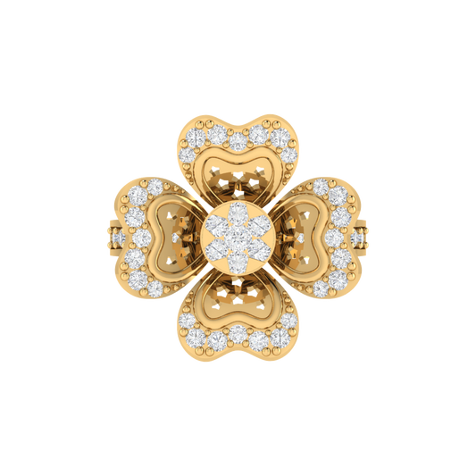 Gold Plated BIS Hallmarked Pure 925 Sterling Silver Cubic Zirconia Floral Ring | Rhodium and Rose Gold Plating Options