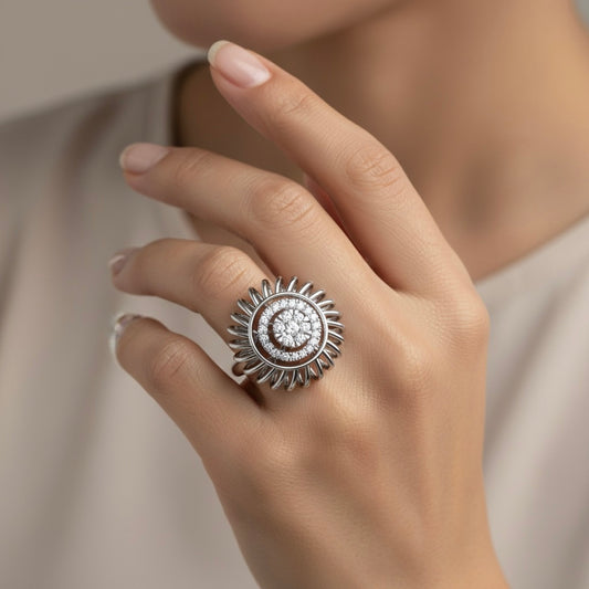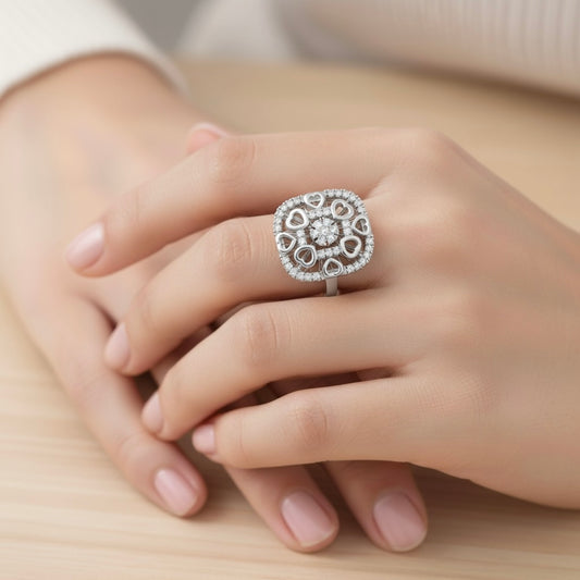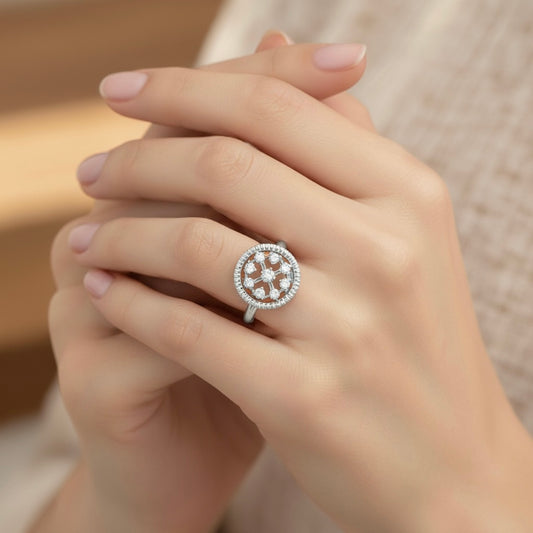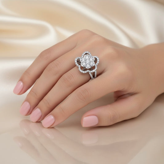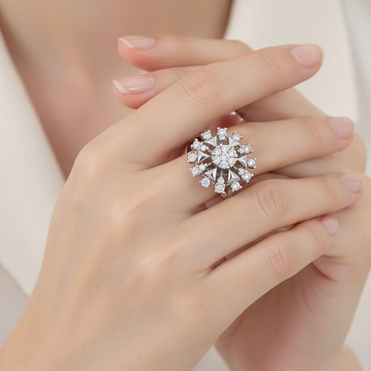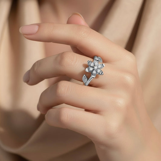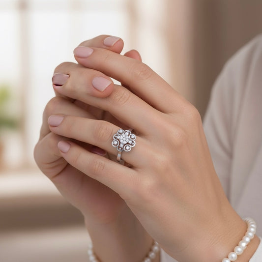 925 Sterling Silver Cubic Zirconia Floral Ring