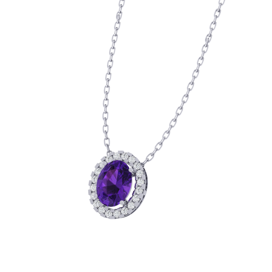 Gold Plated Sterling Silver Oval Cut Amethyst Gemstone Pendant with 18Inch Chain