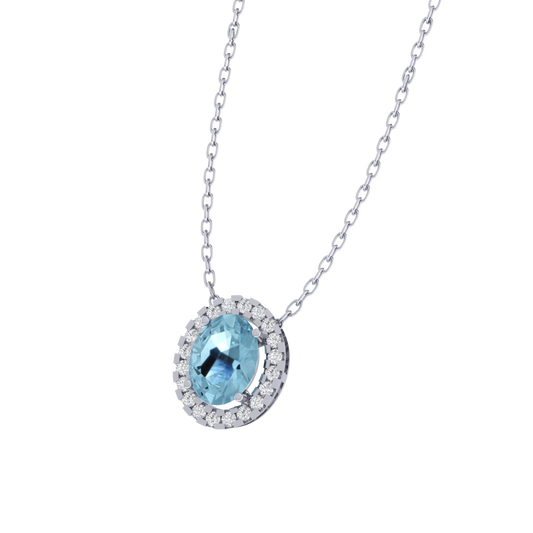 Gold Plated Sterling Silver Oval Cut Aquamarine Gemstone Pendant with 18Inch Chain