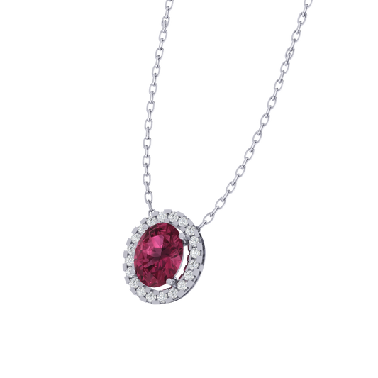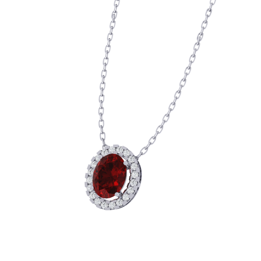 Gold Plated Sterling Silver Oval Cut Ruby Gemstone Pendant with 18Inch Chain