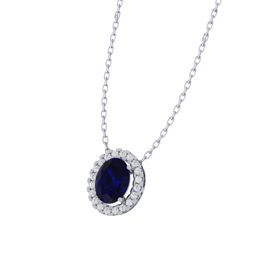 Gold Plated Sterling Silver Oval Cut Sapphire Gemstone Pendant with 18Inch Chain