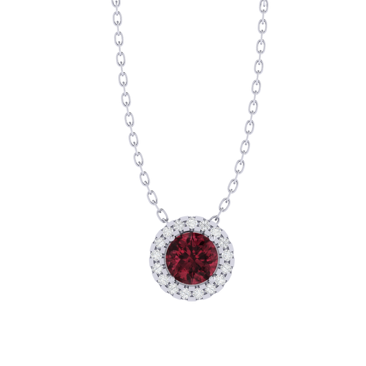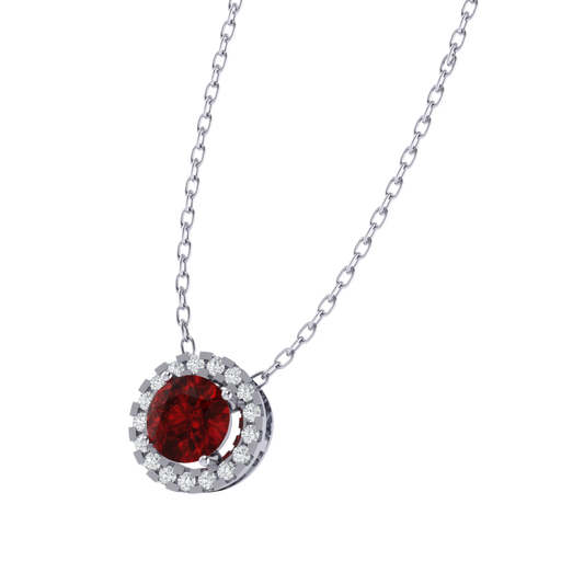 Gold Plated Sterling Silver Round Cut Ruby Gemstone Pendant with 18Inch Chain