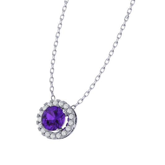 Gold Plated Sterling Silver Round Cut Amethyst Gemstone Pendant with 18Inch Chain