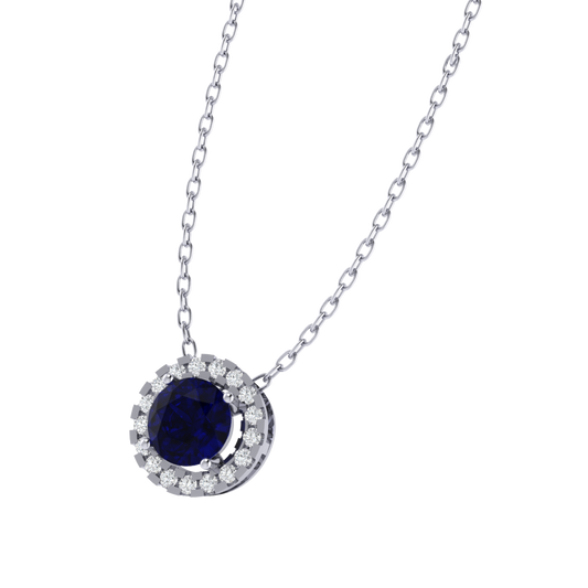 Gold Plated Sterling Silver Round Cut Sapphire Gemstone Pendant with 18Inch Chain