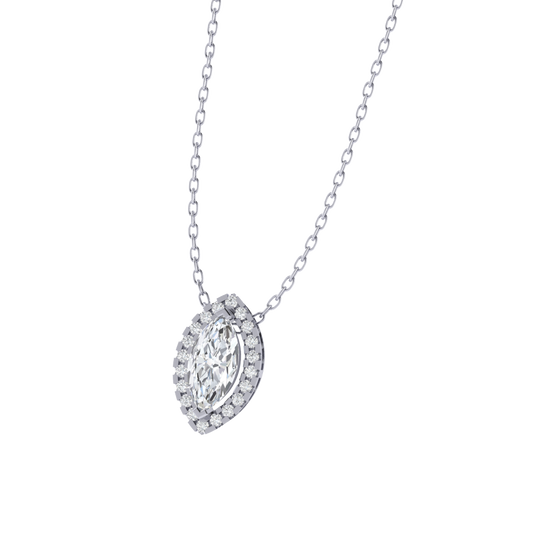 Gold Plated Sterling Silver Marquise Cut Cubic Zirconia Gemstone Pendant with 18Inch Chain