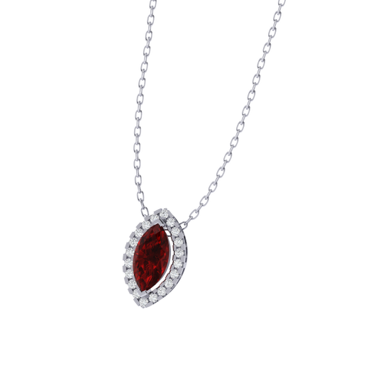Gold Plated Sterling Silver Marquise Cut Ruby Gemstone Pendant with 18Inch Chain