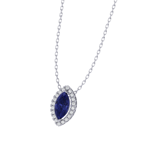 Gold Plated Sterling Silver Marquise Cut Tanzanite Gemstone Pendant with 18Inch Chain