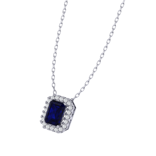 Gold Plated Sterling Silver Emerald Cut Sapphire Gemstone Pendant with 18Inch Chain