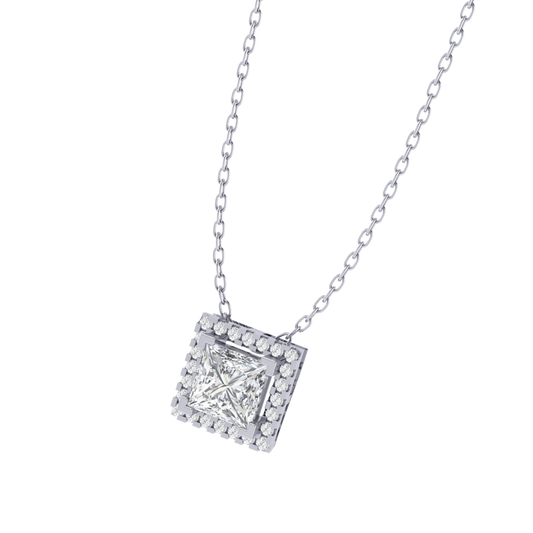 Gold Plated Sterling Silver Princess Cut Cubic Zirconia Gemstone Pendant with 18Inch Chain