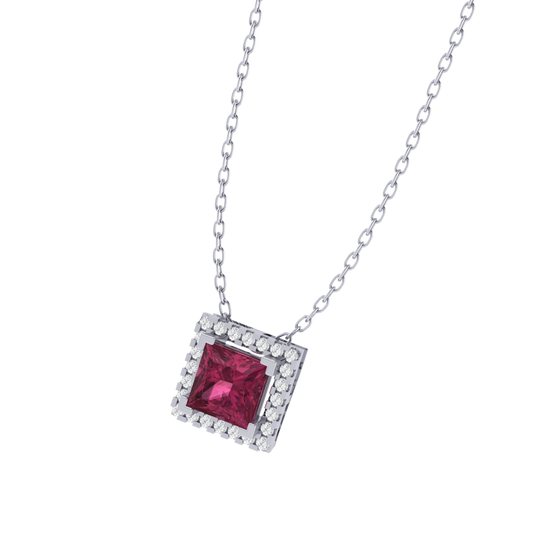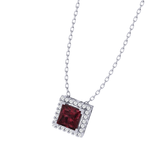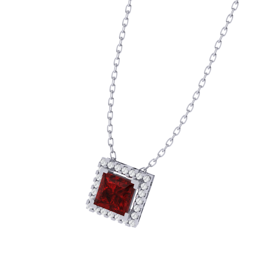 Gold Plated Sterling Silver Princess Cut Ruby Gemstone Pendant with 18Inch Chain