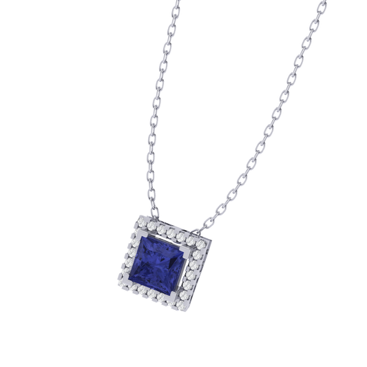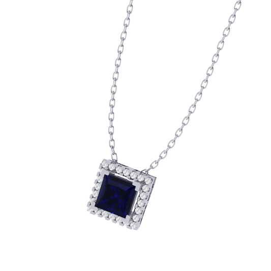 Gold Plated Sterling Silver Princess Cut Sapphire Gemstone Pendant with 18Inch Chain