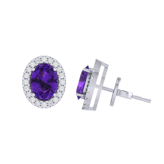 Gold Plated Sterling Silver Oval Cut Amethyst Gemstone Stud Earring