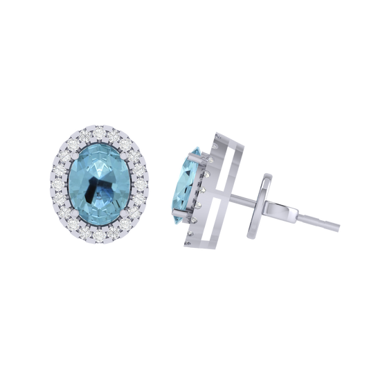Gold Plated Sterling Silver Oval Cut Aquamarine Gemstone Stud Earring