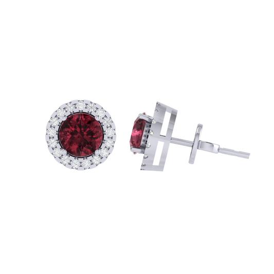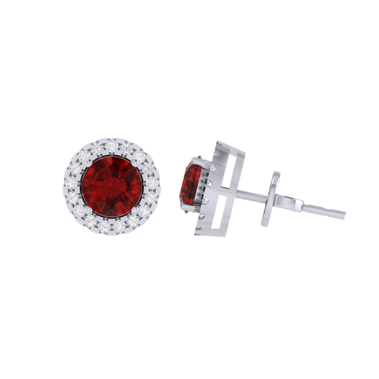 Gold Plated Sterling Silver Round Cut Ruby Gemstone Stud Earring