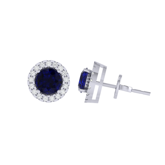 Gold Plated Sterling Silver Round Cut Sapphire Gemstone Stud Earring