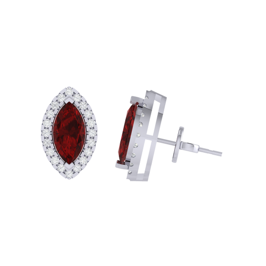 Gold Plated Sterling Silver Marquise Cut Ruby Gemstone Stud Earring