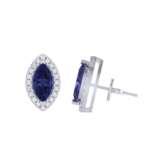 Gold Plated Sterling Silver Marquise Cut Tanzanite Gemstone Stud Earring