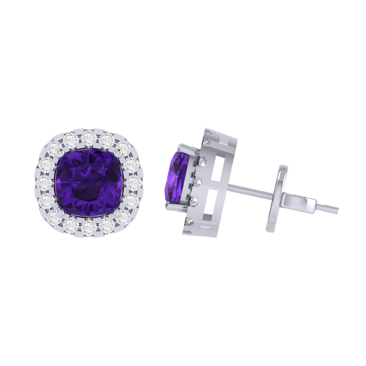 Gold Plated Sterling Silver Cushion Cut Amethyst Gemstone Stud Earring