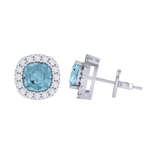 Gold Plated Sterling Silver Cushion Cut Aquamarine Gemstone Stud Earring