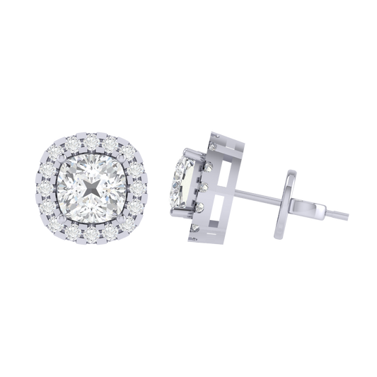 Gold Plated Sterling Silver Cushion Cut Cubic Zirconia Gemstone Stud Earring