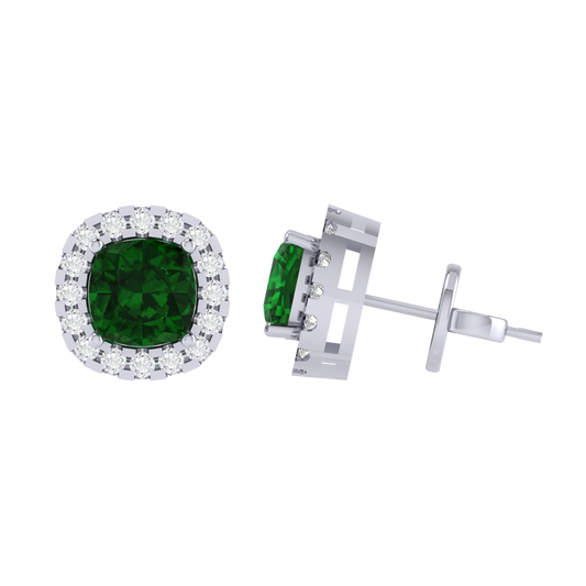 Gold Plated Sterling Silver Cushion Cut Emerald Gemstone Stud Earring
