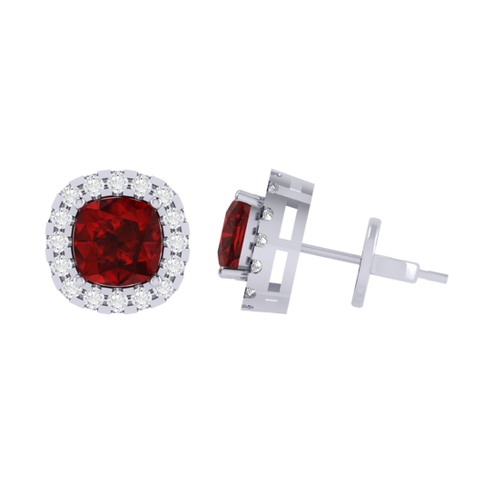 Gold Plated Sterling Silver Cushion Cut Ruby Gemstone Stud Earring